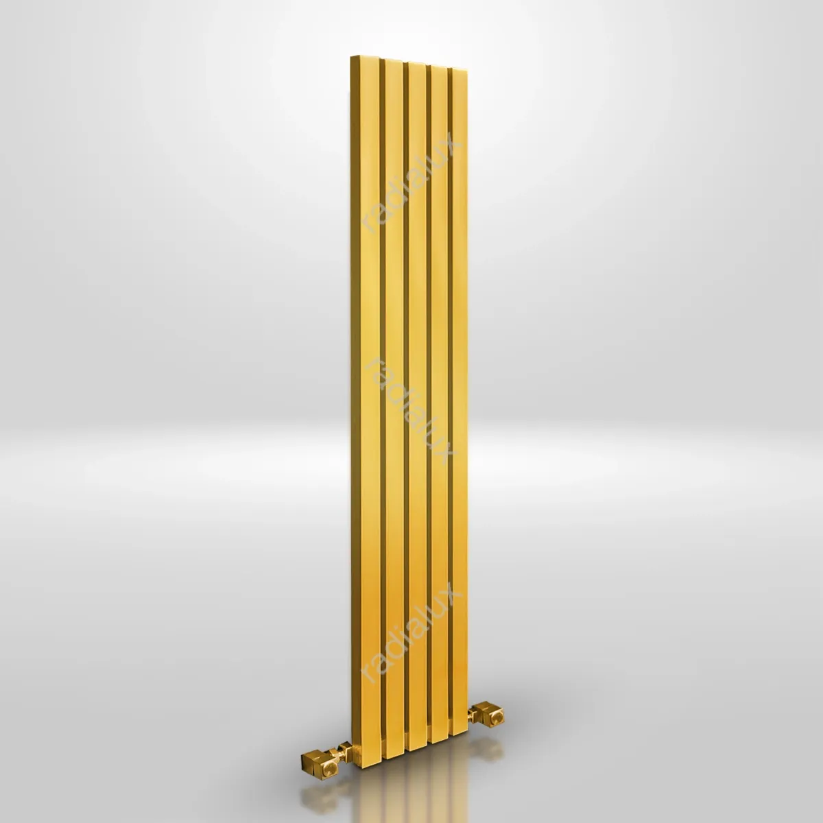 رادیاتور عمودی Vertical 40 3012 با طراحی باریک، بدنهی استیل ضدزنگ 304 و رنگهای استیل و طلایی، انتخابی شیک و عملی برای خانههای مدرن است.